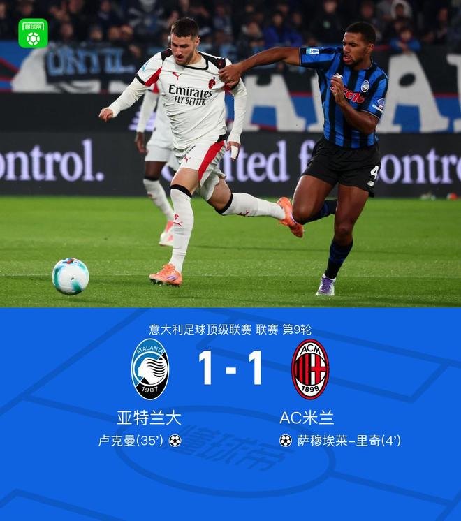 北京时间10月29日,意大利足球甲级联赛主联赛第9轮,亚特兰大主场迎战AC米兰。上半场,里奇远射破门,但阿哈诺格鲁偏出,卢克曼射门扳平比分。下半场,莫德里奇吃到黄牌,但皮球被梅尼昂扑出。最终亚特兰大1-1AC米兰。比赛关键的第4分钟,里奇禁区外远射找到了埃德森。米兰1-0亚特兰大。第35分钟,卢克曼禁区左侧射门破门。亚特兰大1-1米兰。两支球队的球员都参加了比赛。比赛马上就要开始了。第4分钟,里奇禁区外远射击中埃德森后变线。破门,米兰1-0亚特兰大。第8分钟,希恩禁区内头球攻门,但皮球擦着立柱。第21分钟,卢克曼禁区外远射。马尼南将球扑出。这第27分钟,你错失了一次绝佳机会。阿哈诺格鲁禁区左侧射门,皮球被射门。第31分钟,卢克曼踩到福法纳脚踝,福法纳痛苦倒地。第35分钟,卢克曼禁区左侧射门,亚特兰大1-1米兰。第47分钟,圣地亚哥·希门尼斯禁区上方尝试射门,但皮球没有停下。洛夫图斯-奇克在第61分钟替换受伤的圣地亚哥·希门尼斯上场。第67分钟,福法纳A禁区前水平抽射尝试射门,但皮球偏出。第77分钟出现战术犯规。莫德里奇拉扯对手突破,导致黄牌。第80分钟,希恩禁区内头球攻门,但皮球稍稍偏出球门后部。第85分钟,扎帕科斯塔左路带球推射。迈尼昂做出了精彩扑救。国家技术团队协调道德