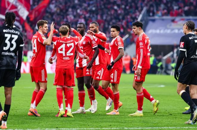 奥利塞在两球落后的情况下拿下两分,而卡尔、乌帕梅卡诺、凯恩和杰克逊各得一分。拜仁慕尼黑6-2击败弗赖堡,将德甲不败纪录延长至20场。 10月停赛前,拜仁客场2-2战平柏林联合,打破了德甲九连胜。这也是拜仁本赛季所有比赛中首次丢一分。在对阵弗莱堡之前,孔帕尼并没有低估对手。 “弗莱堡一直很稳定,他们从来没有改变过比赛方式,但他们也做了一些调整。对阵弗莱堡的比赛通常都很困难。”第11分钟,金特尔脚后跟妙传,铃木佑人右脚低射破门,1-0!弗莱堡取得领先。第17分钟,曼赞比头球破门,2-0!第21分钟,奥利塞右路突入,皮球飞出。卡尔跌入低谷他右脚射门,2-1!第44分钟,奥利塞接到直塞球,卡尔禁区右侧传中,奥利塞扫射破门,2-2。第55分钟,乌帕梅卡诺射门,3-2!第60分钟,禁区中路解围的凯恩射门破门,4-2。第77分钟,奥利塞中距离射门,杰克逊横扫破门,5-2!第84分钟,奥利塞禁区前右侧内切左脚射门,6-2。击败弗赖堡后,拜仁继续领跑德甲,并创造了一系列纪录。首先,拜仁连续43场德甲联赛第一,追平了拉特克在1972年3月至1973年6月期间创下的纪录。拜仁在德甲榜首的时间已经长达434天。积31分排名第二,前11场比赛过后,拜仁追平了此前前11场比赛的积分纪录比赛设定在 2015-16 和 2023-24 赛季。第三,拜仁将赛季开局不败纪录扩大至18场。第四,拜仁将赛季初主场连胜扩大到8场,赛季中期主场连胜扩大到10场。拜仁排名第五,在德甲联赛中主场作战。他们在26场比赛中取得23胜3平,继续在德甲联赛中对阵弗莱堡的不败纪录。排名第六的拜仁在德甲联赛中对阵弗莱堡的不败纪录扩大到19场,取得15胜4平的成绩。排在第七位的是拜仁在过去19场德甲比赛中至少打进两球,在德甲历史上仅次于2013-14赛季的拜仁,当时拜仁连续20场德甲比赛至少打进两球。排名第八的拜仁将德甲不败纪录延长至20场,这是自2020赛季以来德甲最长不败纪录,当时他们已经21场不败。