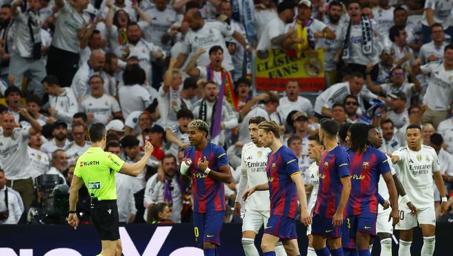 2025-26赛季,皇马将在主场迎战巴塞罗那。主裁判库托在上半场打进了三个颇具争议的判罚。维尼修斯的点球被取消,姆巴佩的世界波被吹响,库巴希在禁区内受到肘击后被忽视。前金哨球员伊图德分析了这三个有争议的判罚。第2分钟,维尼修斯杀入禁区倒地,导致主裁判判罚点球。裁判看到慢镜头后取消了点球。 “判罚被判无效并不是因为越位,而是因为对维尼修斯的犯规。亚马尔的脚步并没有完全稳定,但维尼修斯也占据了亚马尔占据的空间,所以维尼修斯犯规了,”伊图德说。第11分钟,费尔明解围失误后,姆巴佩禁区前抽射破门。随后视频助理裁判介入并判定姆巴佩越位,进球被判无效。伊图德教练说道:“随着越位是技术,一毫米越位就是越位。“要么接受这种技术,要么停止这种技术,我们别无选择。球越过球门线一毫米,你就认为进球了,对吗?这也是越位的情况。”第42分钟,米利唐头球回传,禁区内空出的贝林厄姆将球推入空门,比分变成2-1!库巴什示意 裁判认为休伊森在头撞比赛中肘击了他。视频助理裁判介入判罚点球,但裁定休伊森没有犯规,进球有效。 “休伊森撞到了他的肘部,但这并不是一个鲁莽的举动,所以视频助理裁判不需要干预。而且库巴斯并没有触球,所以并没有影响比赛。我认为这是一个很好的目标。”